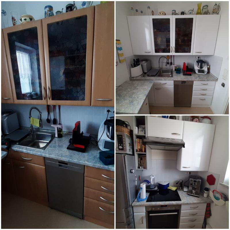 Stattdessen können sie klebefolie für küche anwenden, die perfekt zur abdeckung von unmodernen oder abgenutzten fronten.